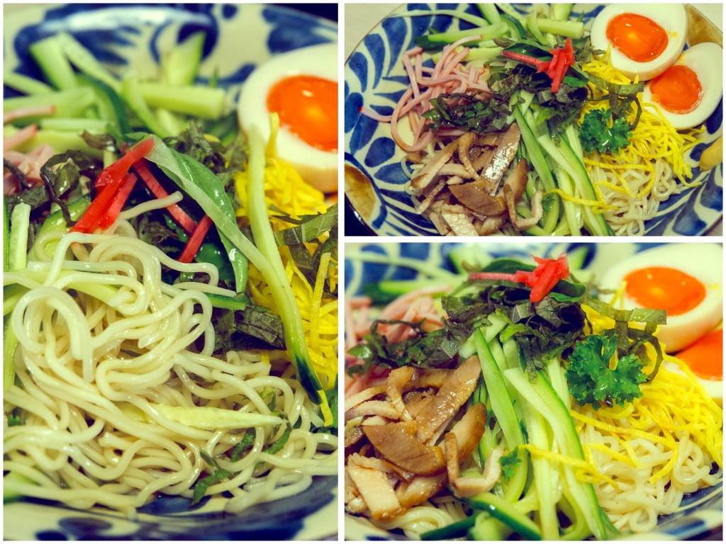 先日作った冷やし中華。冷やし中華って、具材をいろいろ作るからけっこう手がかかるよな。これにも今度はゴーヤーのピクルスも加えてみたい。