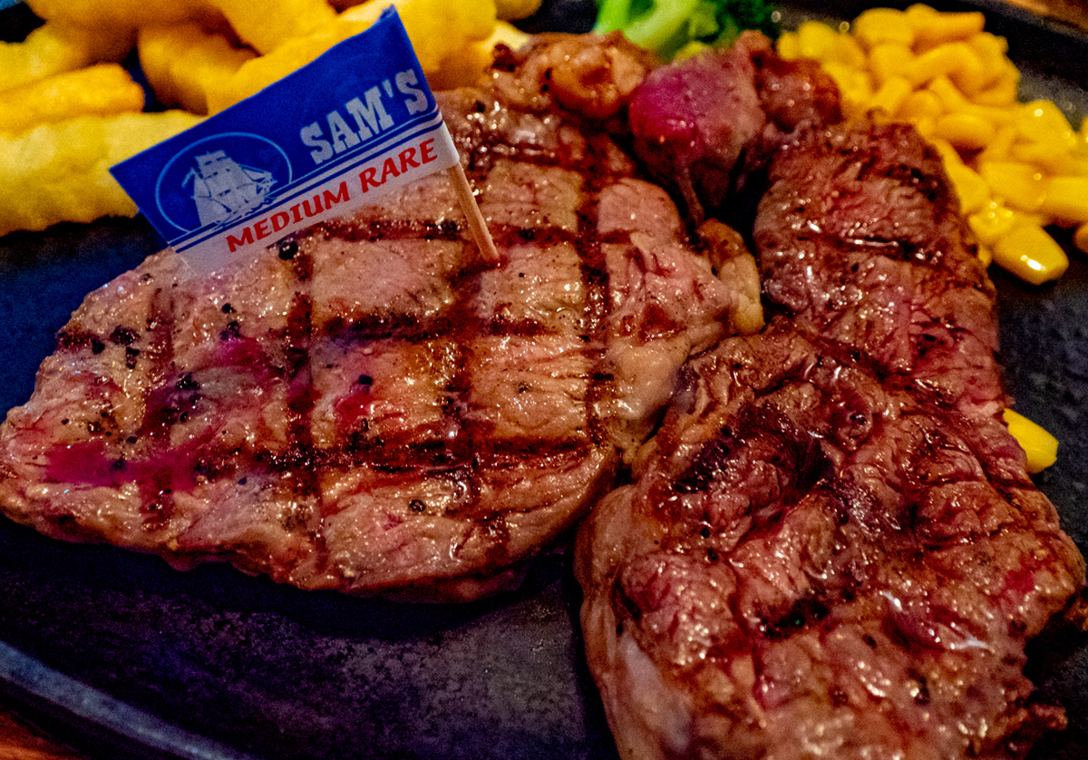 日曜のランチはとても久しぶりに近くのサムズカフェでリブロースの250g。