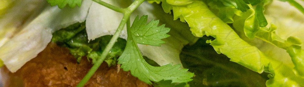 レタスとベランダのパクチーに10辛トマトケチャップ もトッピング。