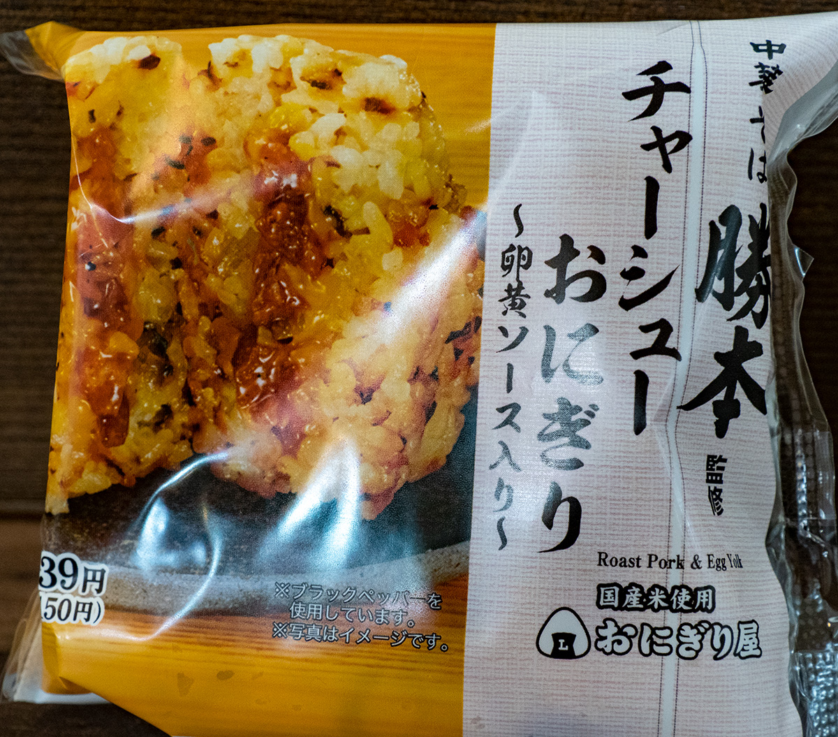 中華そば勝本監修チャーシューおにぎり~卵黄ソース入り~ 150円。