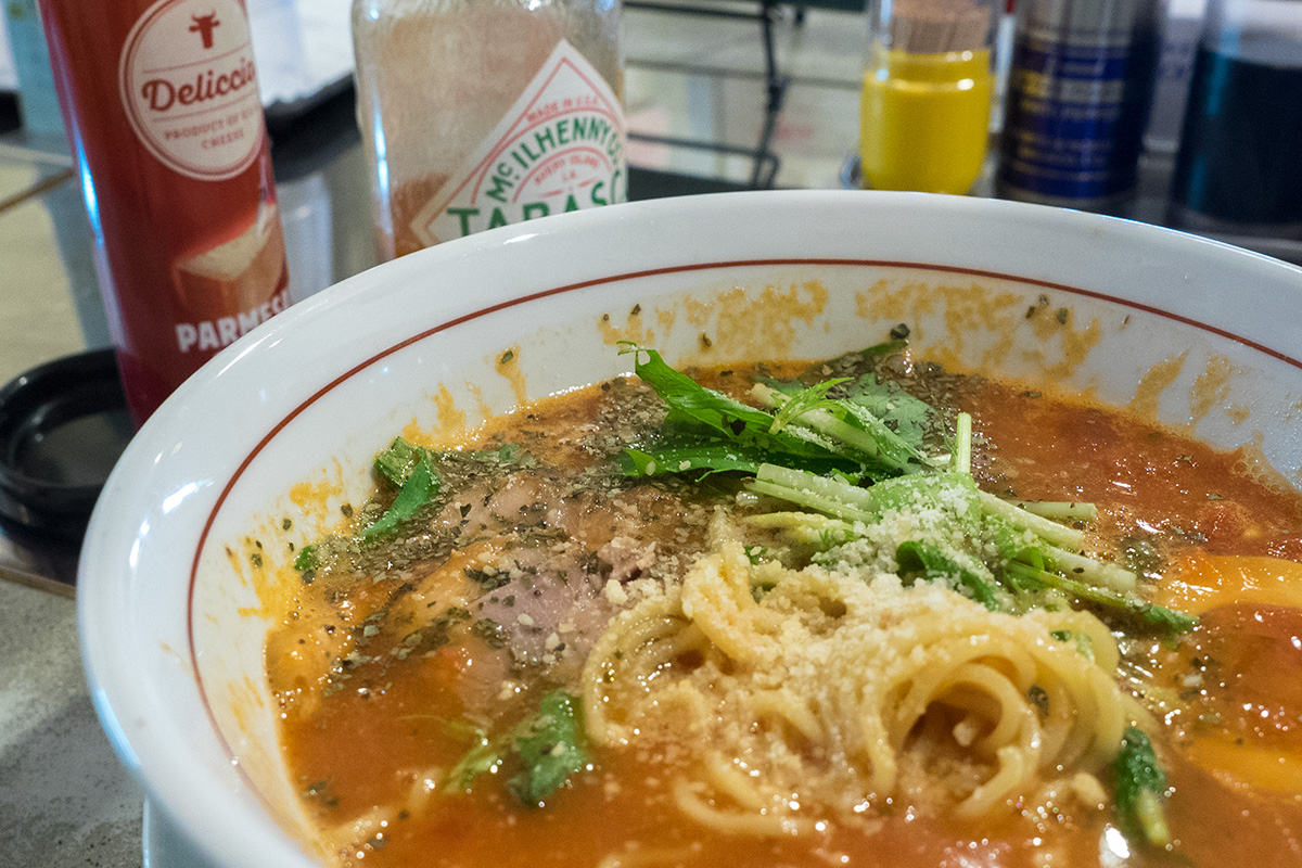 タバスコを少しづつ加えるとピリッとスパイシーさが加わり重層的な旨さになる。タバスコは様子をみながら少しづつ入れるのがいい。