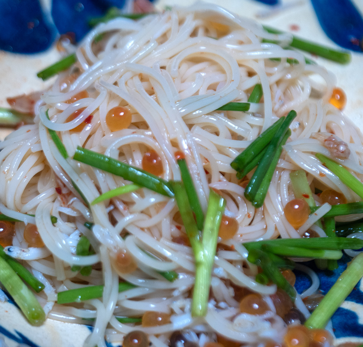 シラスとイクラとネギとキムチのぶっかけそうめんを作ってみた。