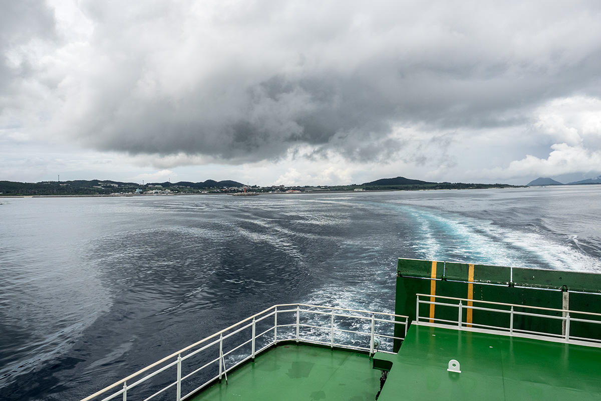 途中少し船も雨に降られたけど、1時間ほどで無事に運天港に着いた。