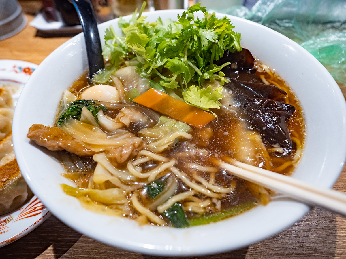 nov.22nd tue. 2022 午前のよろず相談のあとのランチはちょっと久しぶりに10分ほど歩いて空海へ。 カウンターに空き席があったので待ち時間なし。 五目ラーメンにしようとも思ったけど、酸辣湯麺を見つけててしまった。 850円。 それに餃子3つ250円をプラス。 計1100円。 これが酸辣湯麺850円。これならもやしプラスでもよかったかも。 酸味は控えめで甘さのなかに辛さのあるスープ。 ルツシコの麺ものどごしがいい。 豚肉、ニラ、キクラゲ、筍、キクラゲなど割と具も豊富だけど、多いわけじゃないからもやしとかプラスしてもいいかも。 餃子にしたけどライスとのセットにして最後に雑炊風にするのもいいかな。 辛さはそれほどじゃないけど、油断するとちょっと咽せそうになる(^…