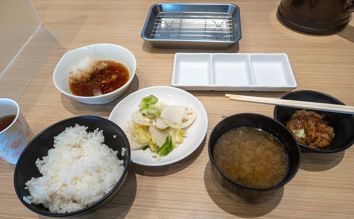 カウンターだとレンコンと白菜の浅漬けと明太昆布と黒烏龍茶が食べ飲み放題。