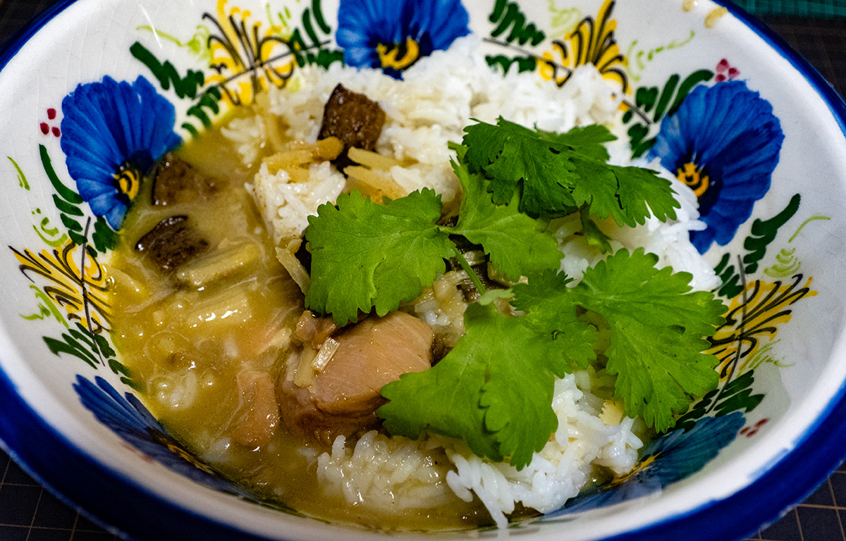 香りのいいタイのジャスミン米にファミマのレトルトグリーンカレーとパクチーのトッピング。