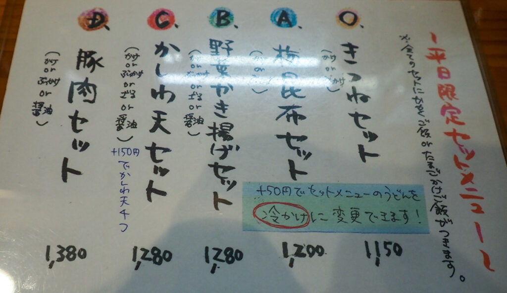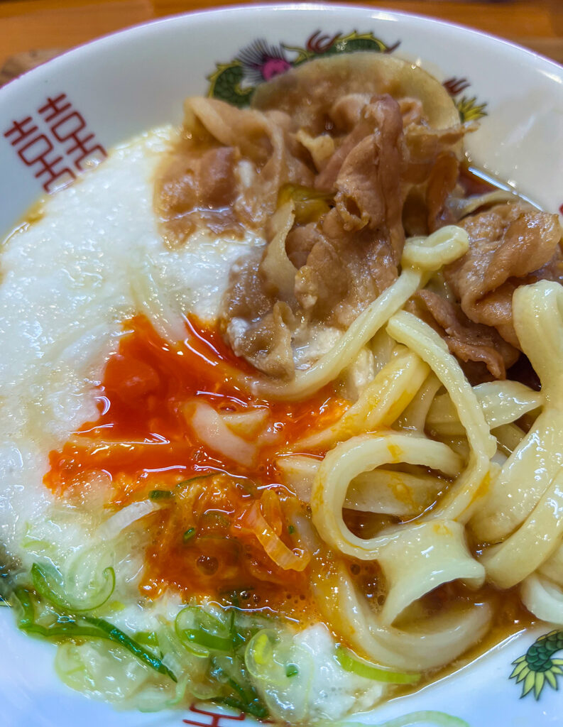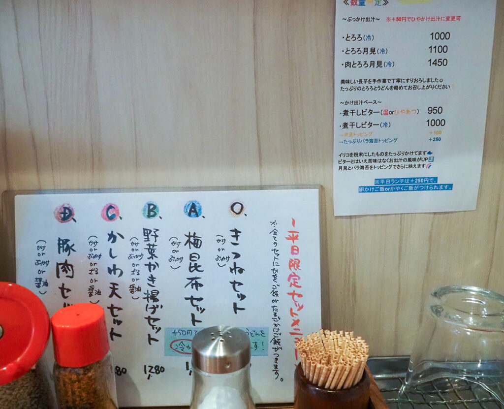 メニューは割と豊富にある。初めてならきつねにするところだけど、最初に目についたおろし肉玉うどんにひかれてしまった。