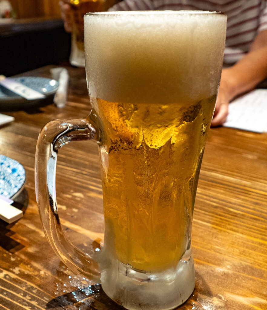 まずはよく冷えた生ビールに一品料理並の突き出しでスタート。