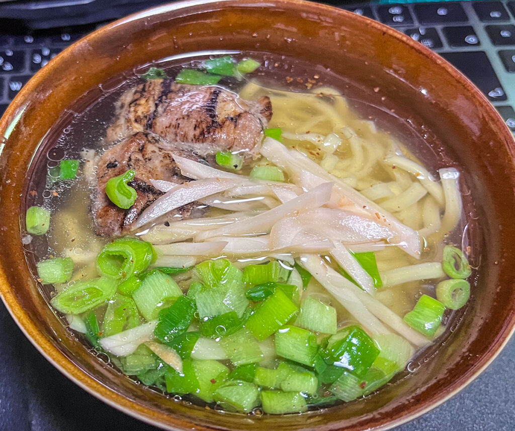 nov.16th sat. 2024 かねひでに売ってる50円そばの麺で朝そば。ラーフェスの丼の小を使用してみた。 ベランダのネギたっぷり。 炙り三枚肉と入れ忘れそうになったけど急いで切った生姜もトッピング。 なかなか美味いけど、もっと熱々で食べられるようにしたいな。 スープは別に作って最後に熱々のを注ぐといいかな。 関連サイト:Facebook┃Twitter┃おきぐる┃Facebook┃Twitter┃おきぐる┃okinawaweb┃南風原タウン情報┃チーズ教室 ┃Okinawaweb Express┃mixi┃グシクムイ ブログ┃ (adsbygoogle = window.adsbygoogle…