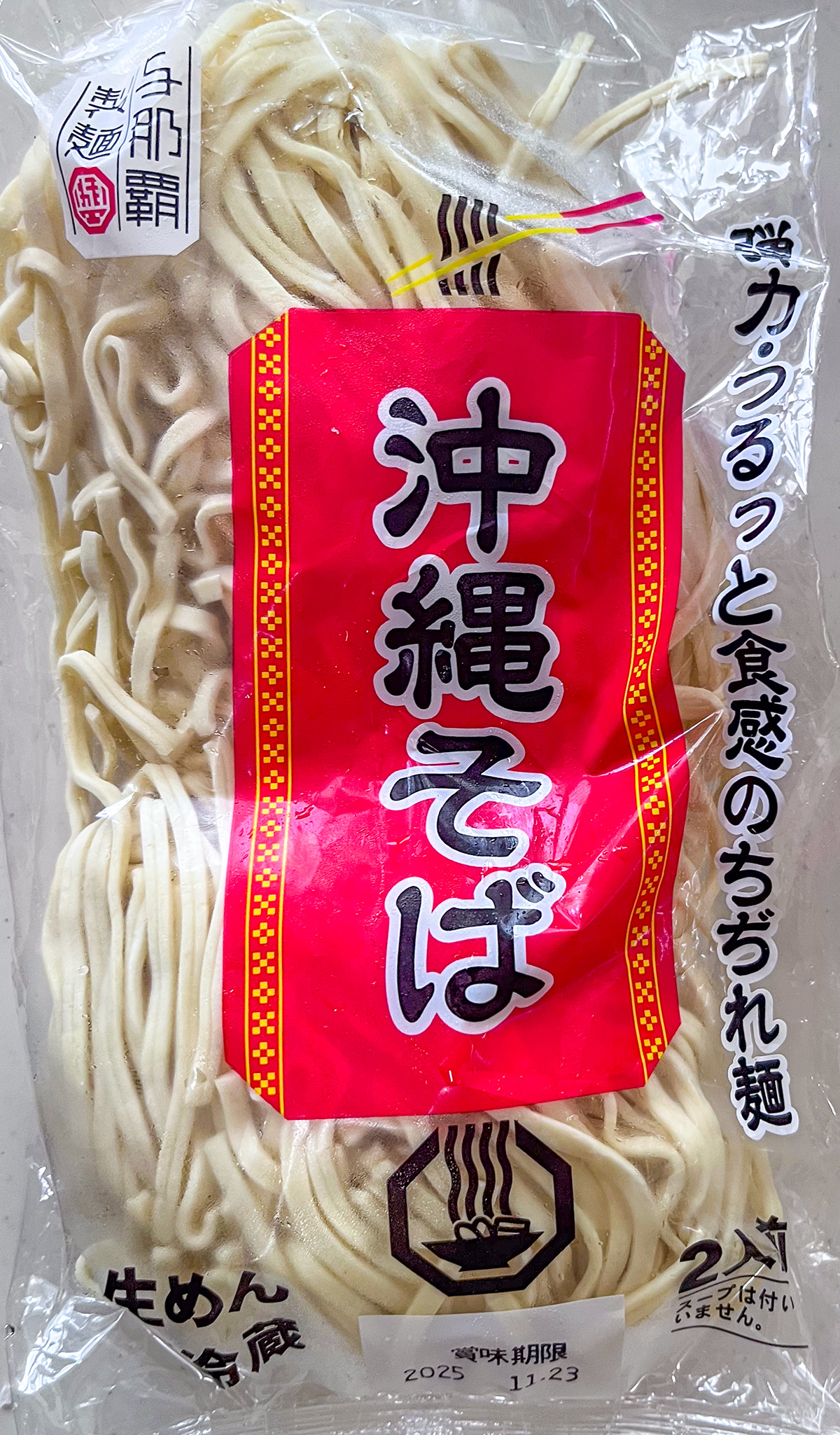 sep. 25th thu.2025 かねひでで売っている50円そばでネギたっぷり軟骨ソーキそば。 税込だと54円だけど、100gとちょうどいいボリュームの与那覇食品の麺。 この麺は熱湯を潜らすくらいで決してゆがかない方がいいと思う。 レトルトの軟骨ソーキはレンジで1分ほどチンして、小ネギたっぷりトッピング。 仕上げに七味をパラパラ。 これは安くて美味い沖縄そばだ(^ ^ 関連サイト:Facebook┃Twitter┃おきぐる┃Facebook┃Twitter┃おきぐる┃okinawaweb┃南風原タウン情報┃チーズ教室 ┃Okinawaweb Express┃mixi┃グシクムイ ブログ┃ (adsbygoogle…