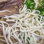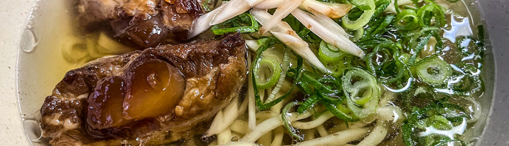 軟骨ソーキとネギに酢漬け生姜の細切りをトッピング。