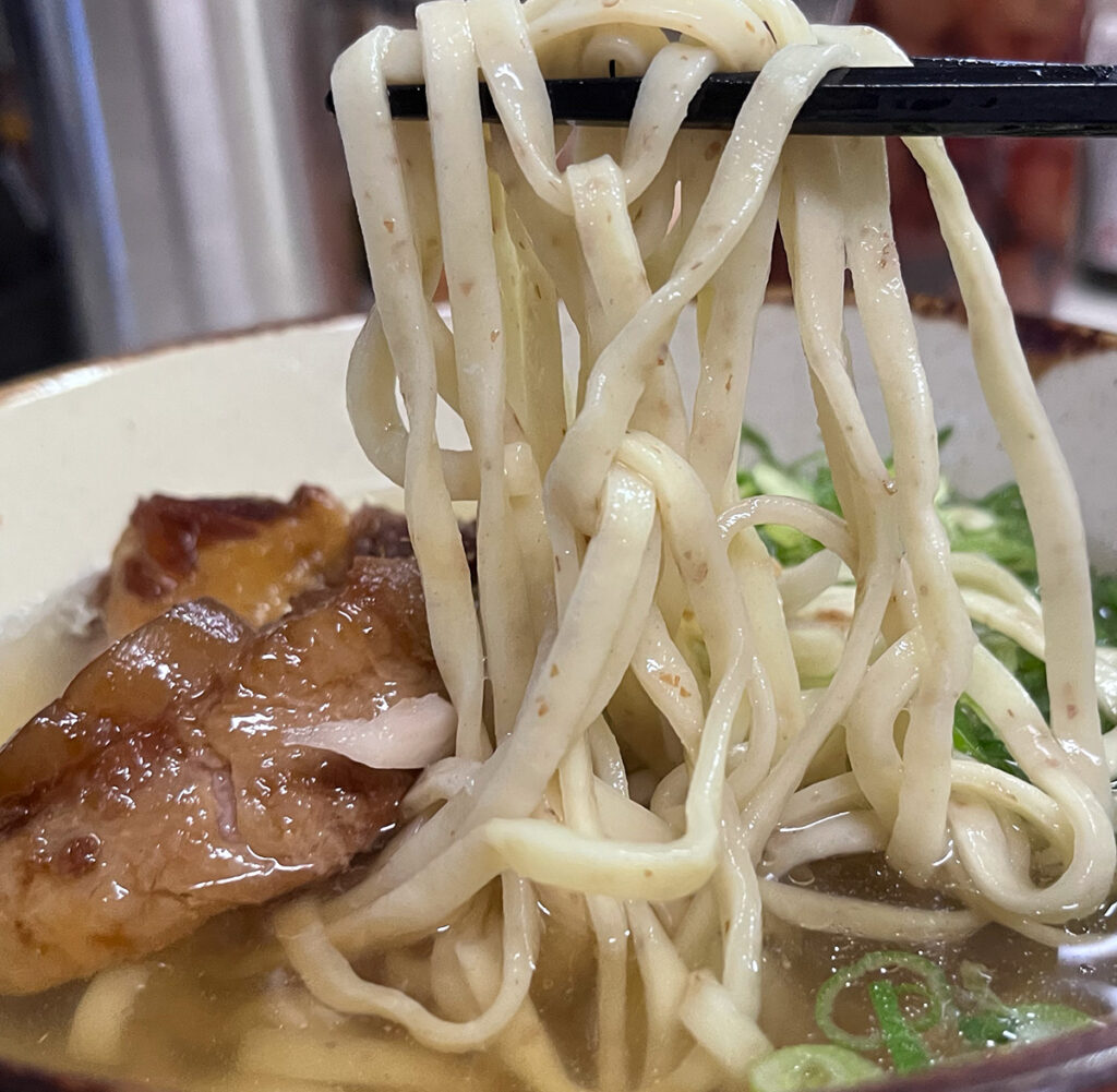 オキコの全粒粉そばで軟骨ソーキそば
