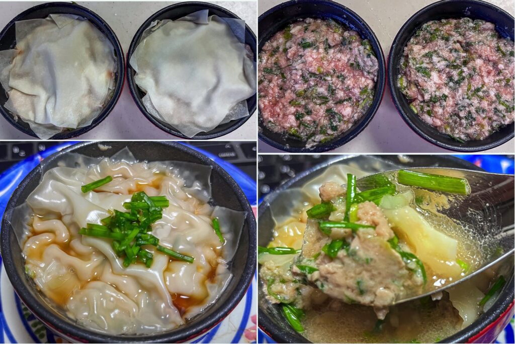 フライパンに2センチほどの水を入れたら中火で熱し沸騰したらココット皿をいれ、蓋をして8-10分蒸したらできあがり。爪楊枝を刺して赤い肉汁がでなければ大丈夫。
