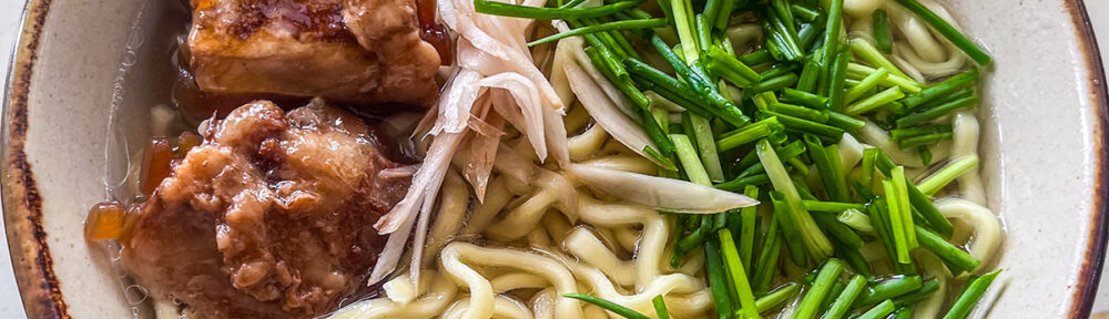 軟骨ソーキとベランダの20日ねぎに酢漬けの生姜の細切りトッピング。
