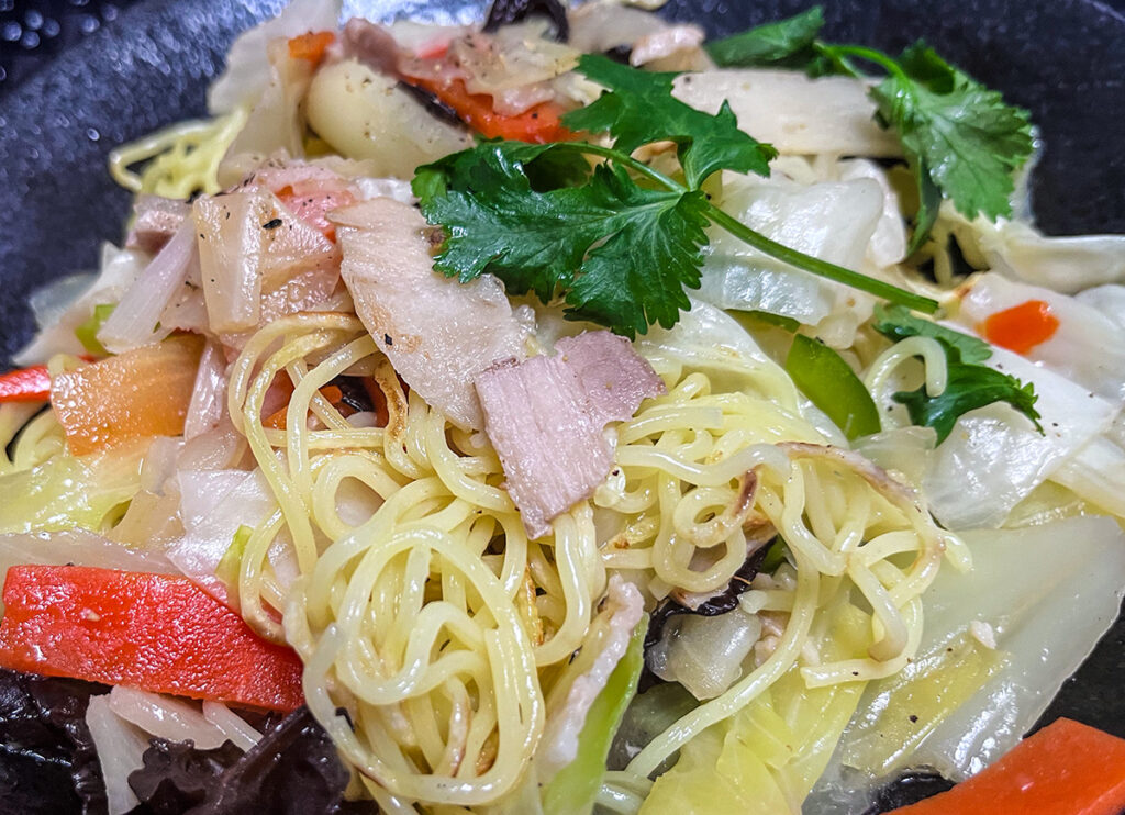 sep.16th tue. 2025 大きな焼きそばパプリカが冷蔵庫に余っていたのでソーセージでソース焼きそば。 焼きそばはまず麺をほぐさないで強火で片面を焼いたら、ひっくり返して動かさないでまた4分放置して焼くのが大事。 そしたら皿に取り出しておいて、ソーセージと赤ピーマンを焼く。 焼けたら麺をもどしてソースをかけて混ぜ合わせ。 最後にパクチーをトッピングして出来上がり。 香ばしくパプリカの甘さと食感があわさって美味い。 粉ソースの場合は、水と酒とみりんとオイスターソースにカツオ節とカレー粉をちょっぴり加えるとさらに美味いね。 赤ピーマンとパプリカってどう違うのかとも思うけど、これは大きく食感も違うのでパプリカでいいんだよな。 関連サイト:Facebook┃Twitter┃おきぐる┃Facebook┃Twitter┃おきぐる┃okinawaweb┃南風原タウン情報┃チーズ教室 ┃Okinawaweb Express┃mixi┃グシクムイ…