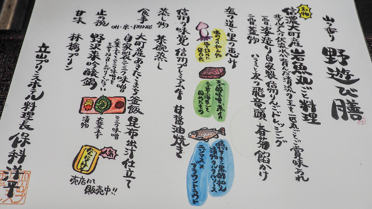 料理は昨夜のホテルよりいいな。それにメニュー表が見ていても楽しい。