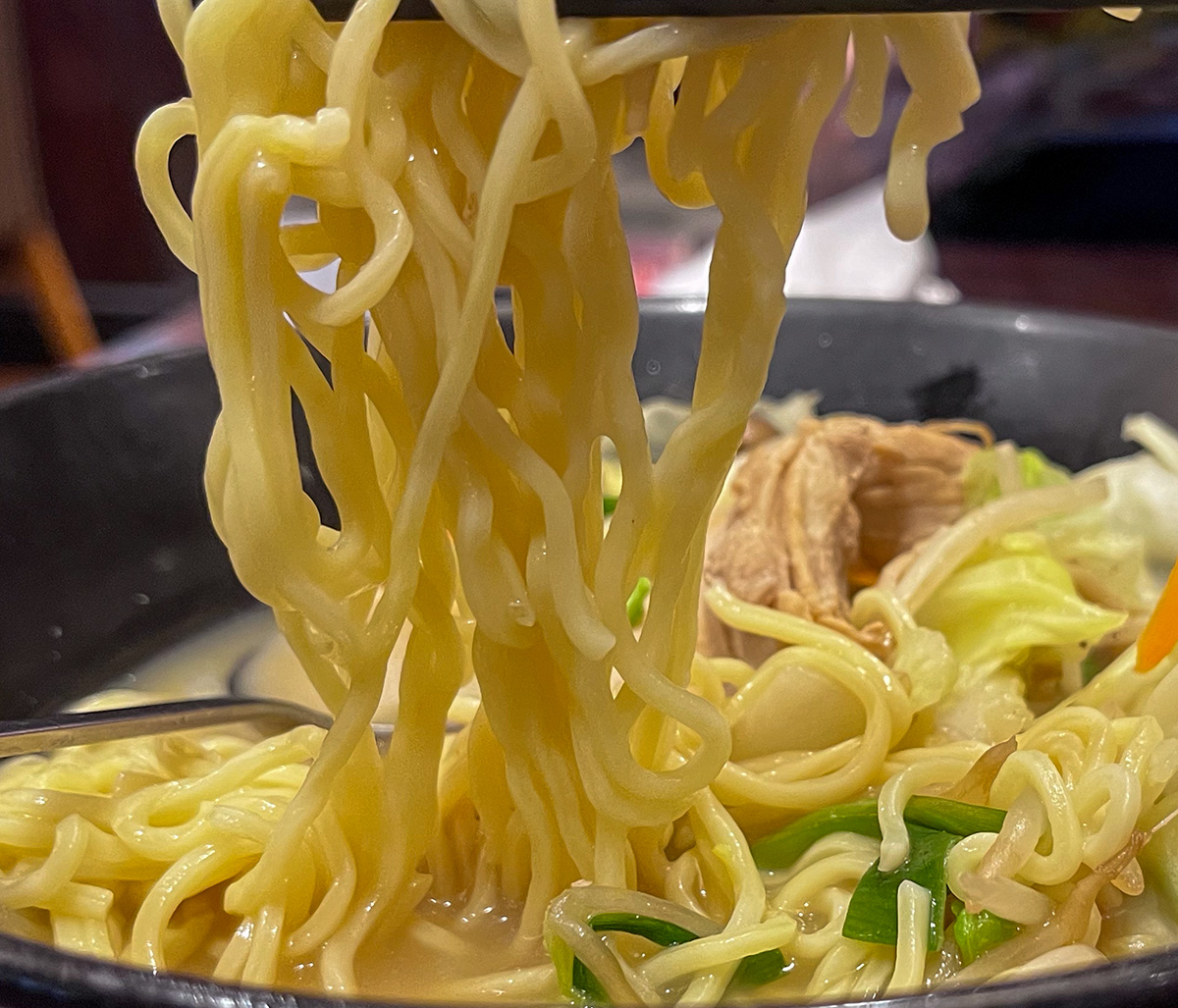 味見した1日分の野菜が摂れる低糖質のタンメンは、麺は柔目だけど、」味も具材もなかなか豊富だし、味もいける。