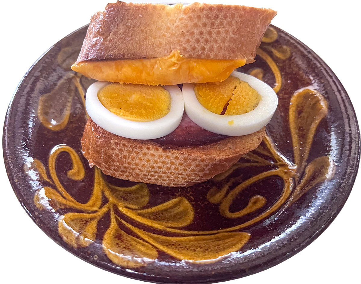 aug. 1st sun. 2021 morning baguette with cheese and lever paste and sunny side up…