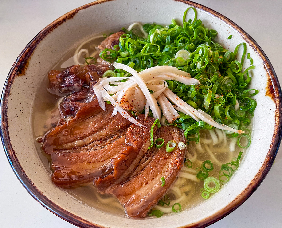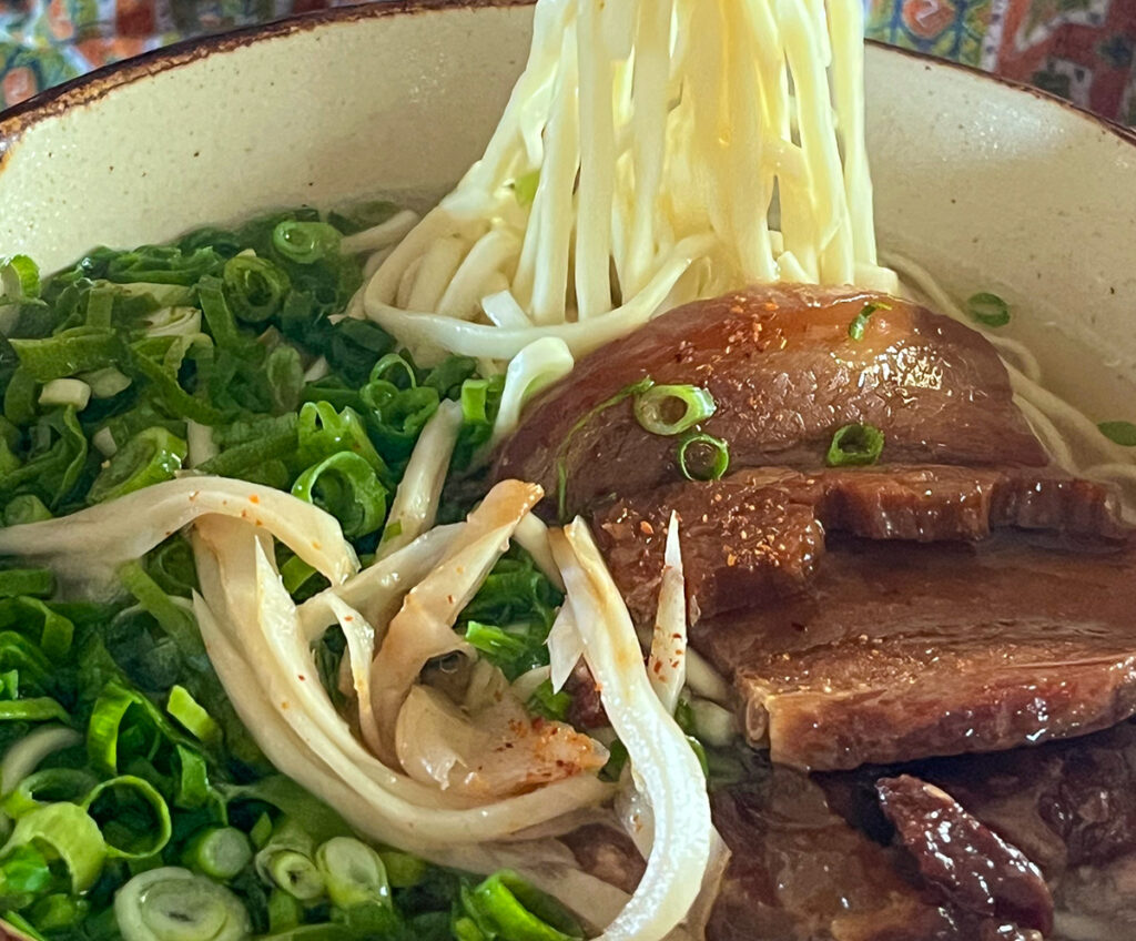 与那覇食品の麺で軟骨ソーキそば