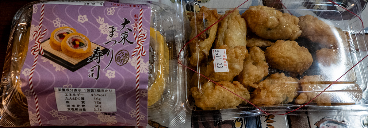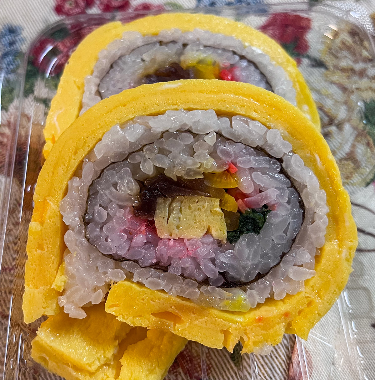 包んでいるタマゴは甘く中の具は歯触りもよく味もいい。
