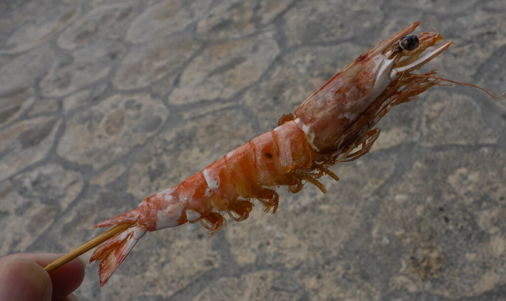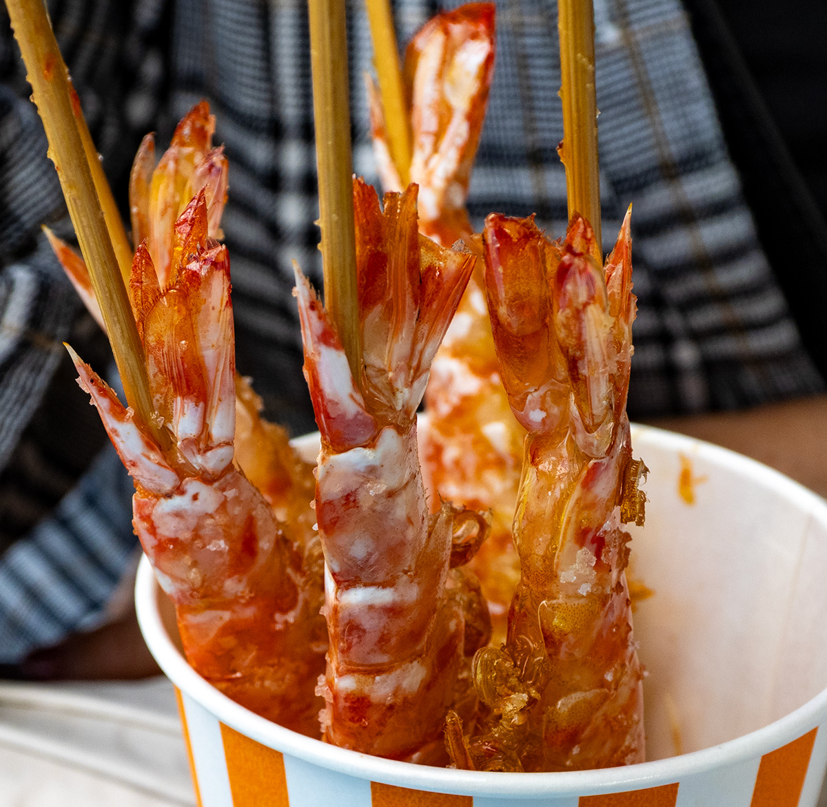 屋台の大東そばもいいかなと思ったけど、車海老の唐揚げを食べてみた。