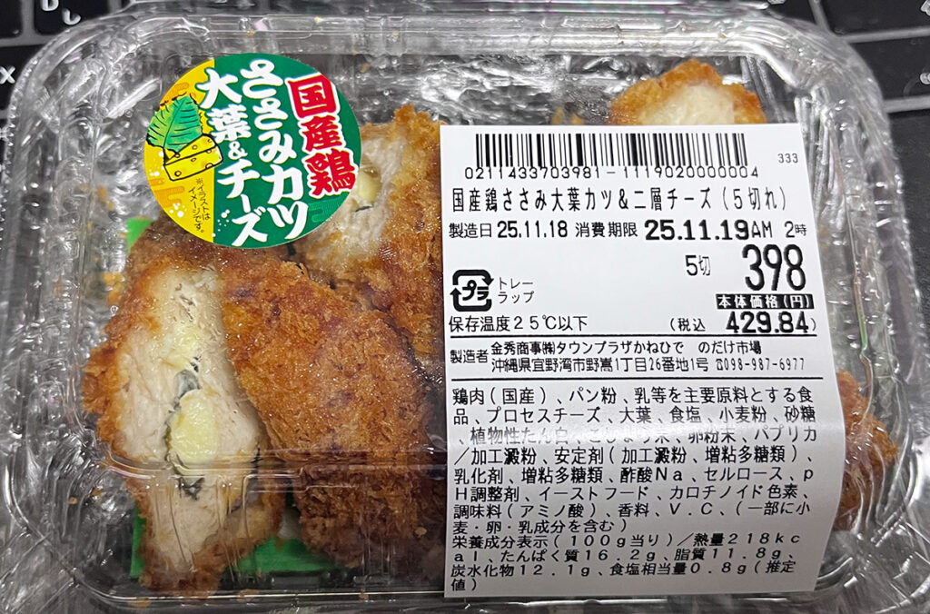 夜の一品に、かねひでのささみ大葉カツ&二層チーズ。