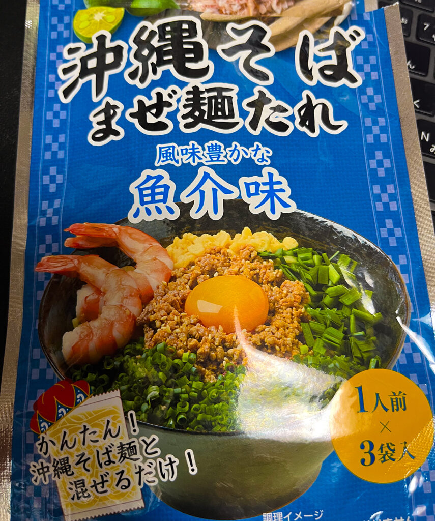 これでかねひでの沖縄そばまぜ麺たれ魚介味でまぜそばにしてみた。