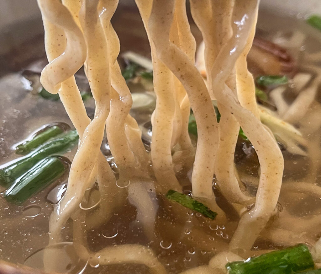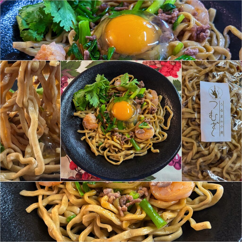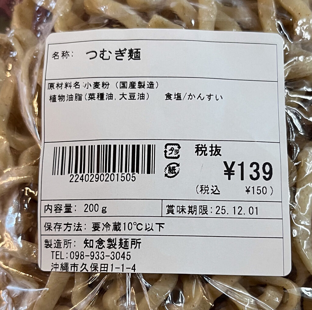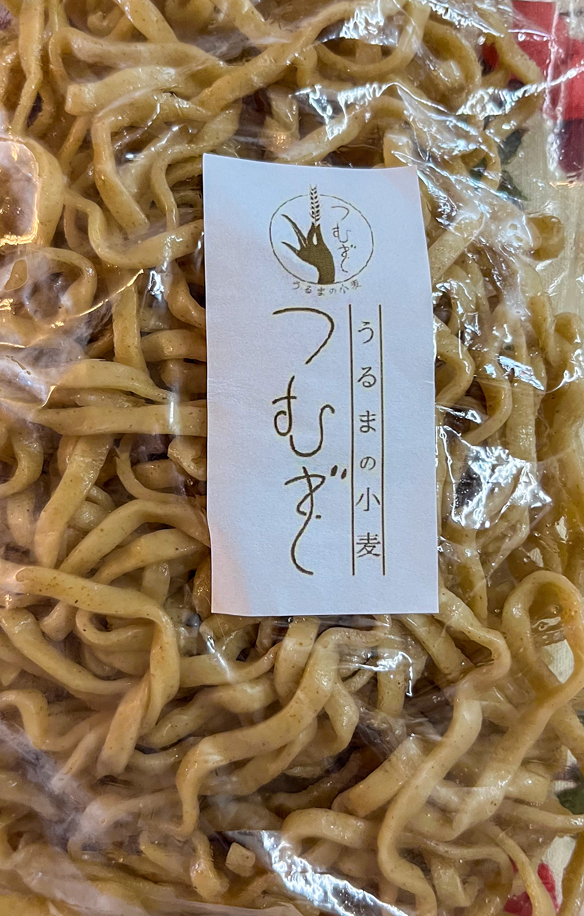 先日ウルマルシェで入手した津堅島の小麦で作った麺のつむぎを使ってみた