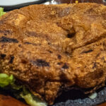 厚切り豚タン炙り。タレにつけて食べるとなんともいい歯ごたえだ。