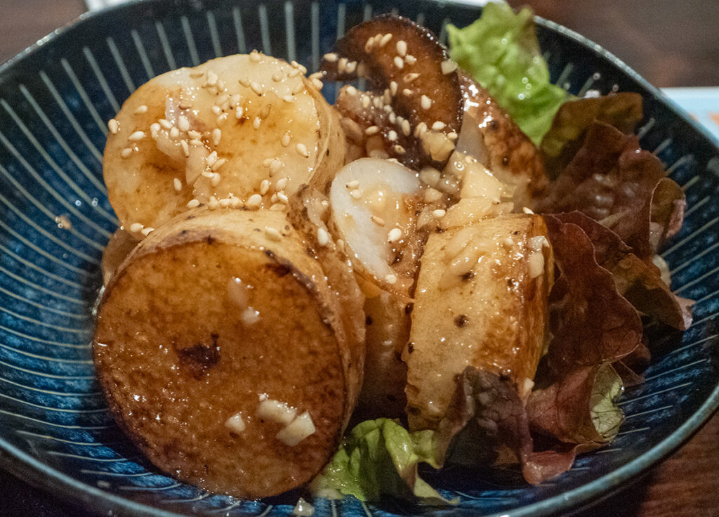 山芋のガーリック焼き。サクサクっとした歯ごたえにトロォリさがあわさり、味付けもとてもよくなんともいい味で美味いなぁ。