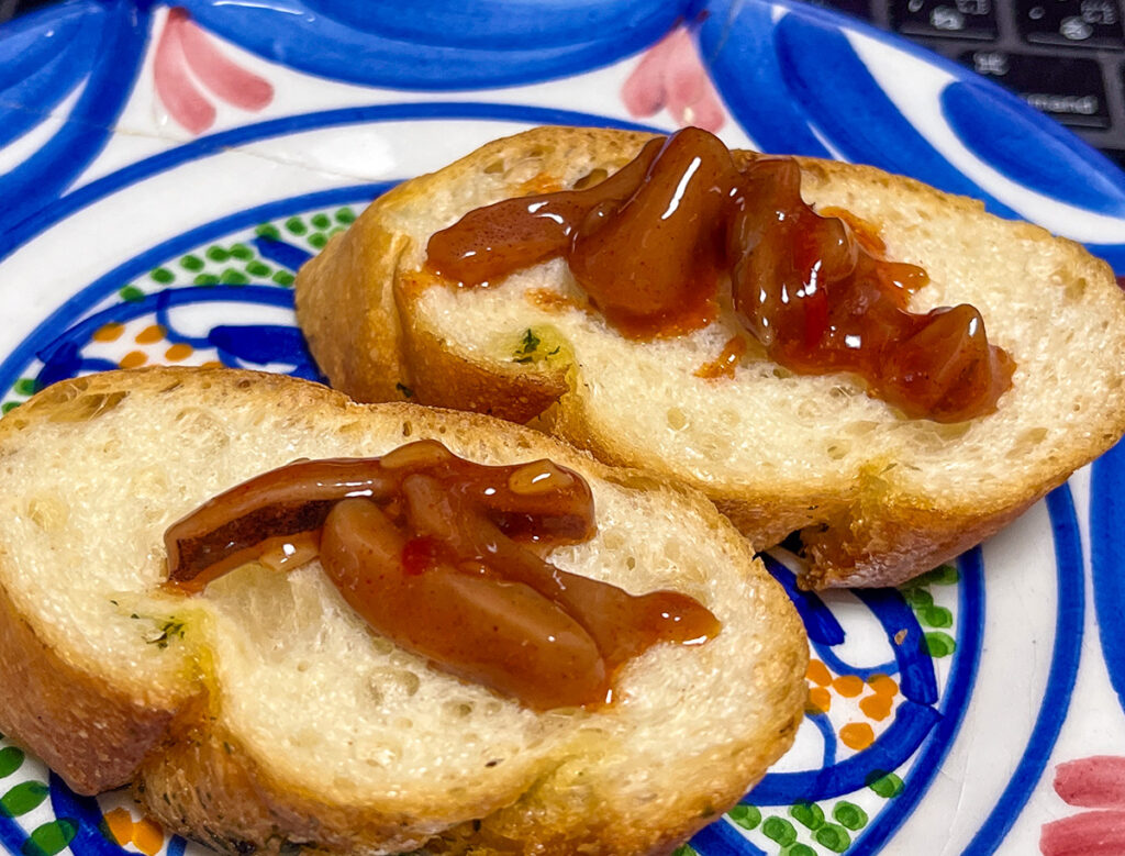 今回はちょっと炙ったバゲットにトッピングしてみたけど、これも美味い。