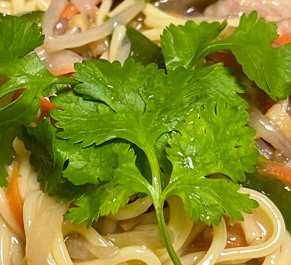 パクチーをのせると色合いも良くなるし栄養も多分いいよな(^ ^