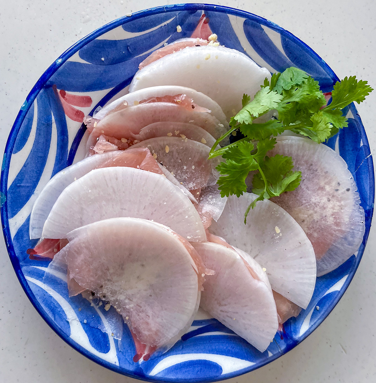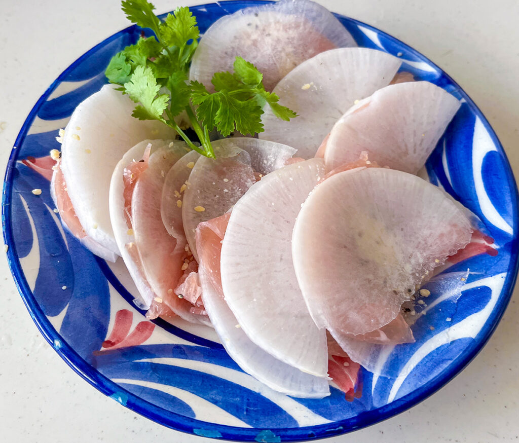 生ハムにバルメザンチーズと胡椒をトッピング。