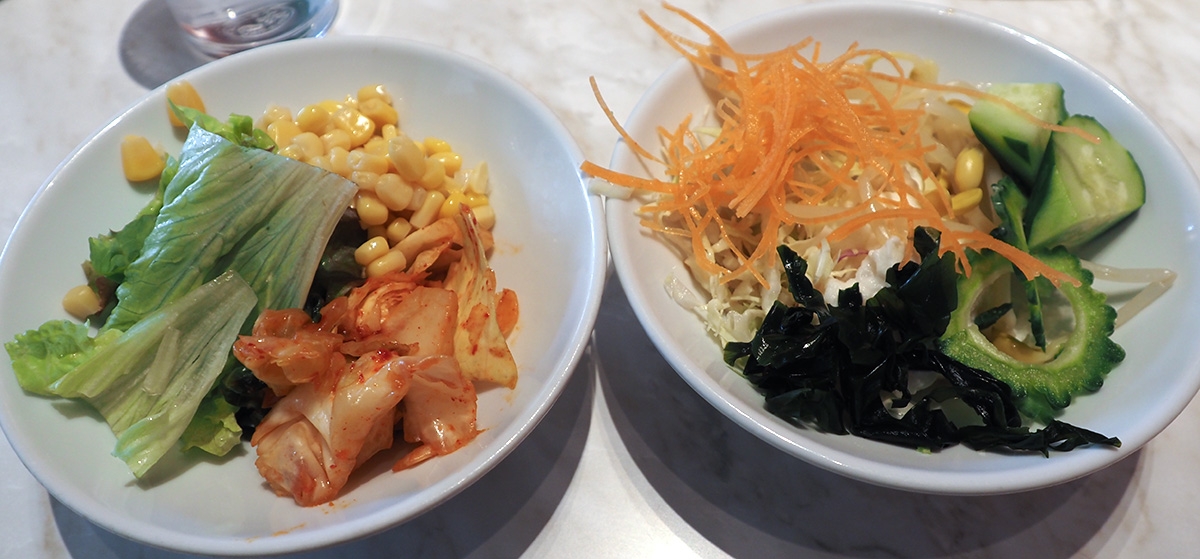 単品だとボリュームには欠けるけど、いくつか取るとライスはおかわり無料だし、サラダもいろいろ食べれて、お腹はけっこう満ちるかな。