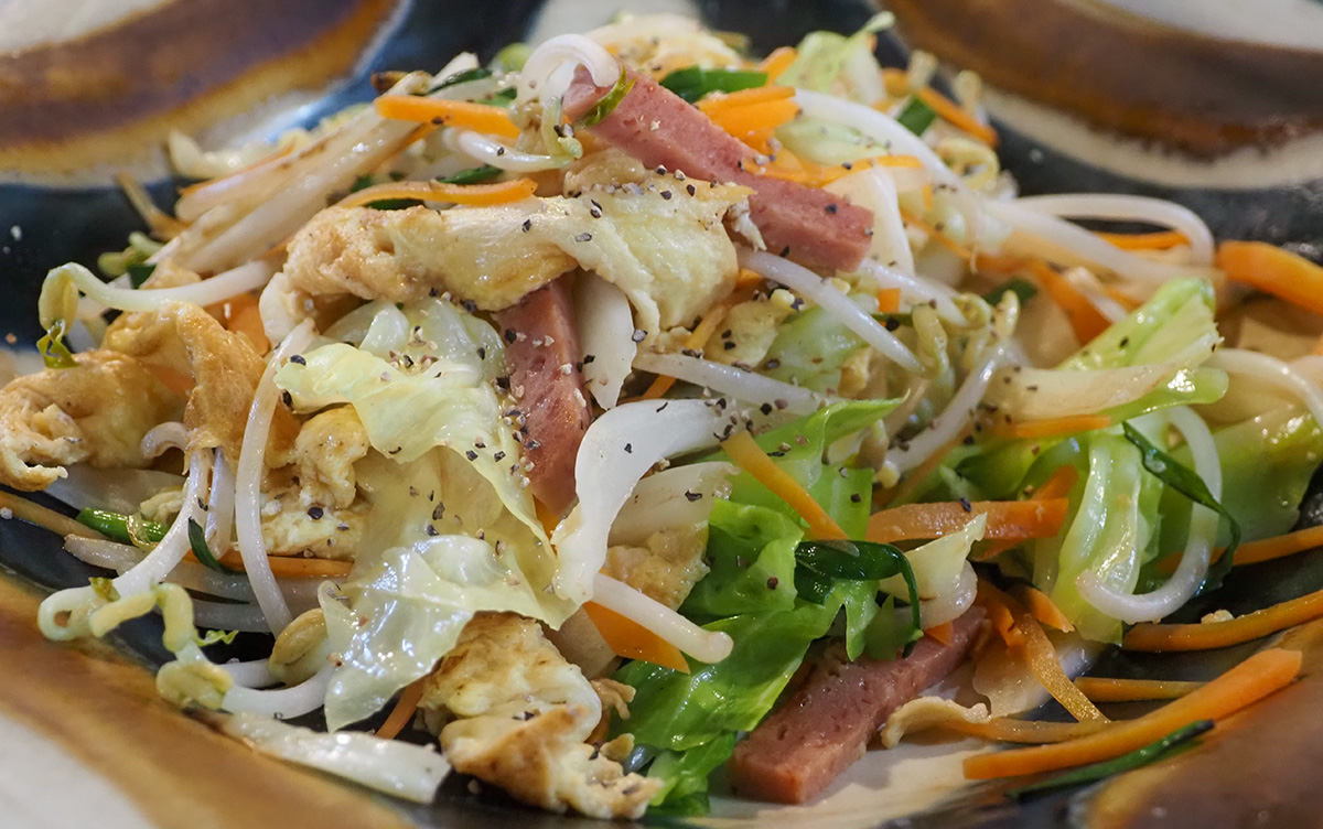 野菜もたっぷりなフーチャンプルーはやっぱり好きだなぁ。美味い。