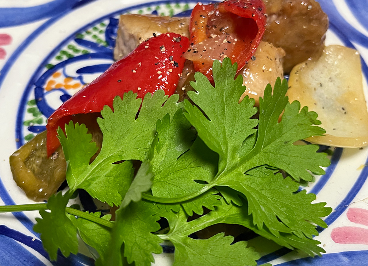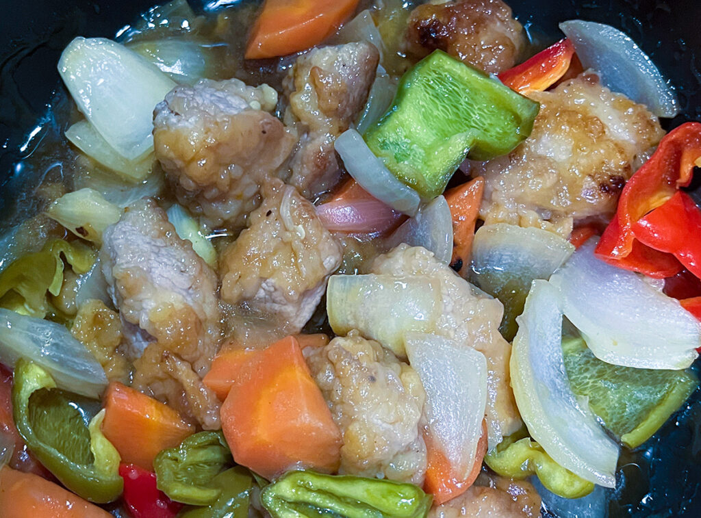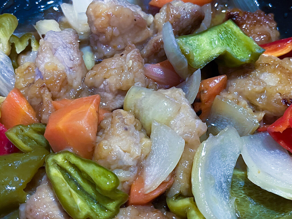 酢豚にパクチーもよくあう。