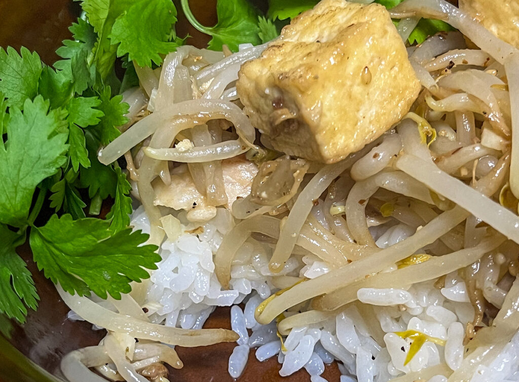 朝の豆腐チャンプルー丼withパクチー