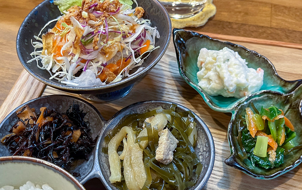 鹿尾菜や昆布などの煮付け。いづれもていねいに作られていてうまい。
