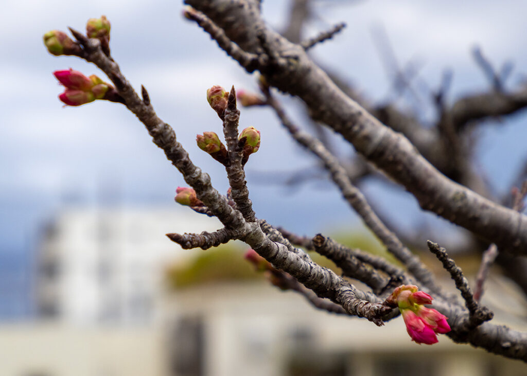 空気がピリッとする寒空の下(と言っても15度くらいだけど)桜が咲いている。