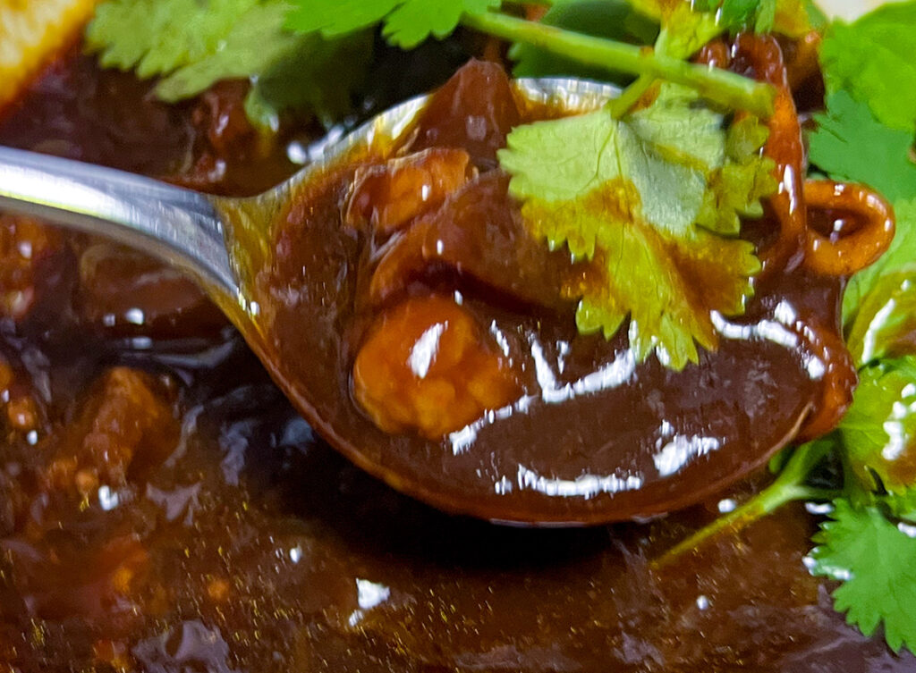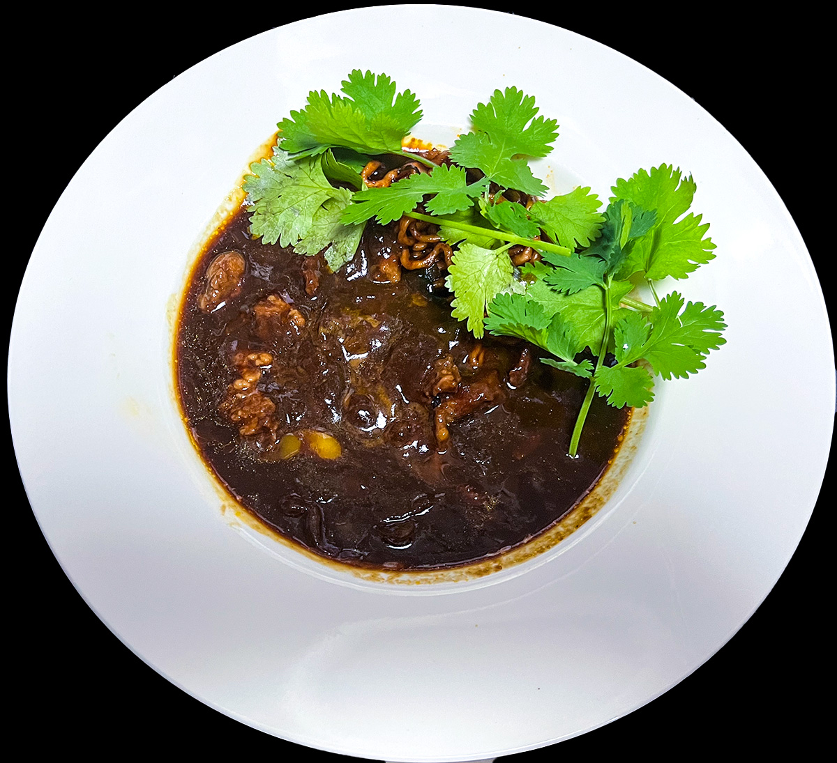 パクチートッピングで色合いもいい。なければパセリやネギでもいいかな。
