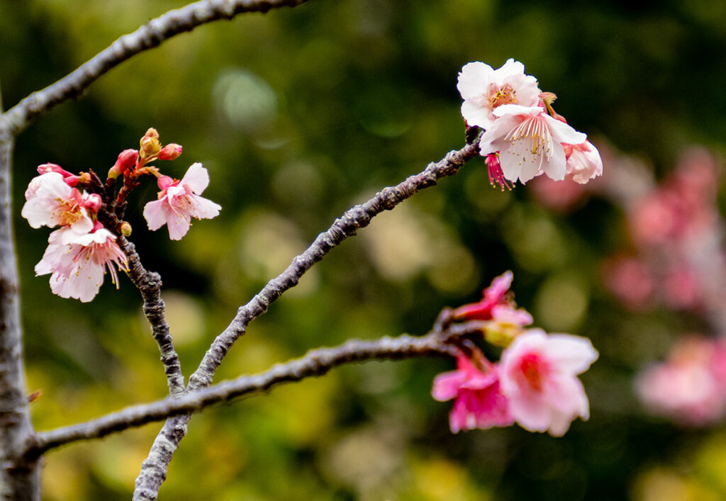 確かに沖縄の寒緋桜は桃みたいな色だけど、中には白っぽいのもある。