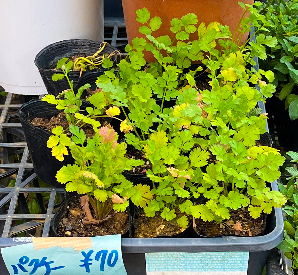店頭にパクチーがあった。一つ70円と安い。