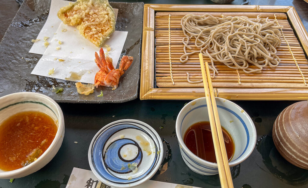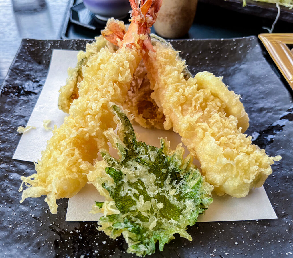 海老はカラッと上がっていてサクプリなんだけど、蕎麦はちと柔らかめかなぁ。