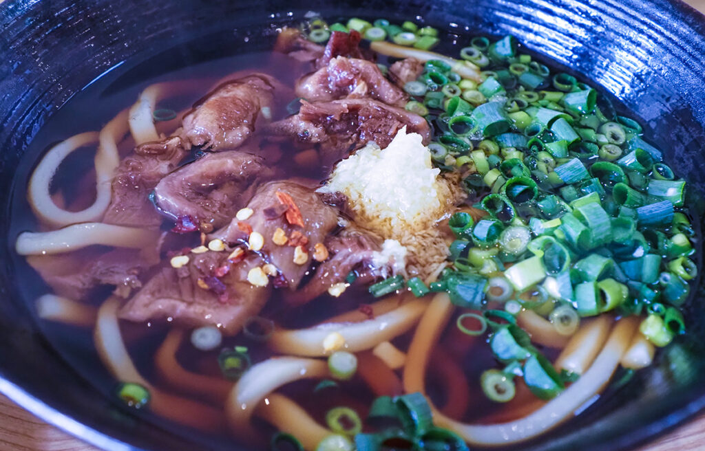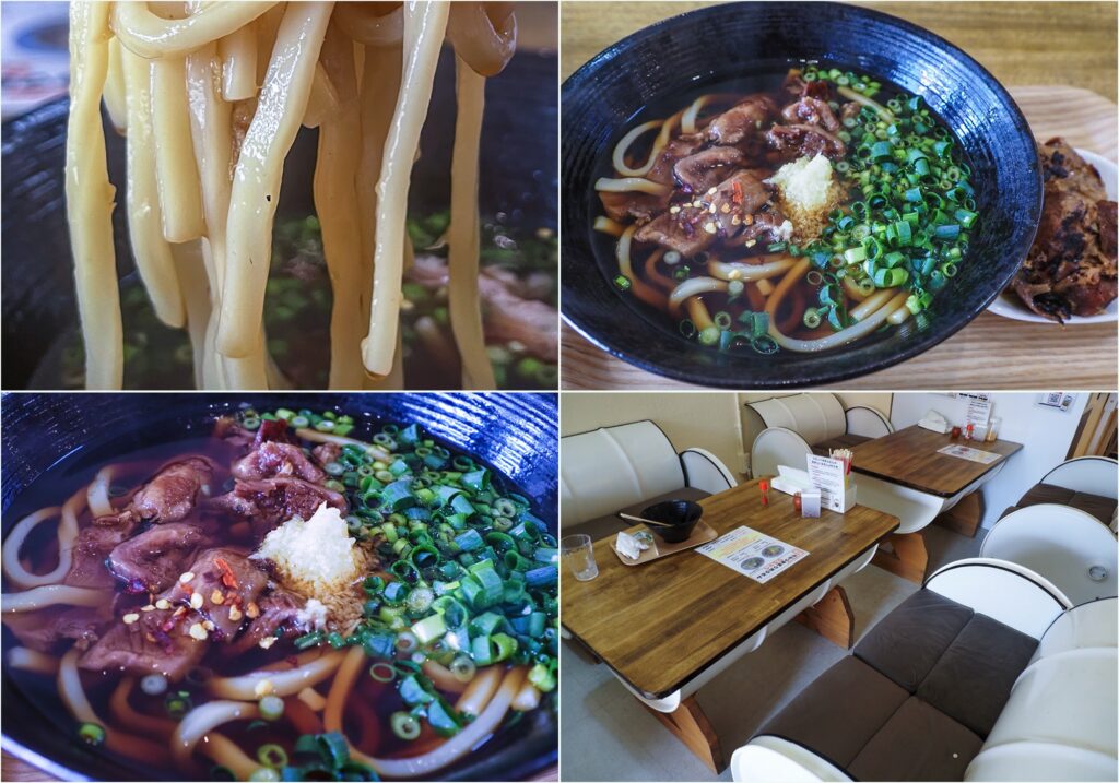 メニューはシンプルに牛すじ肉うどんと、沖縄らしく炙り軟骨ソーキうどんがメイン。