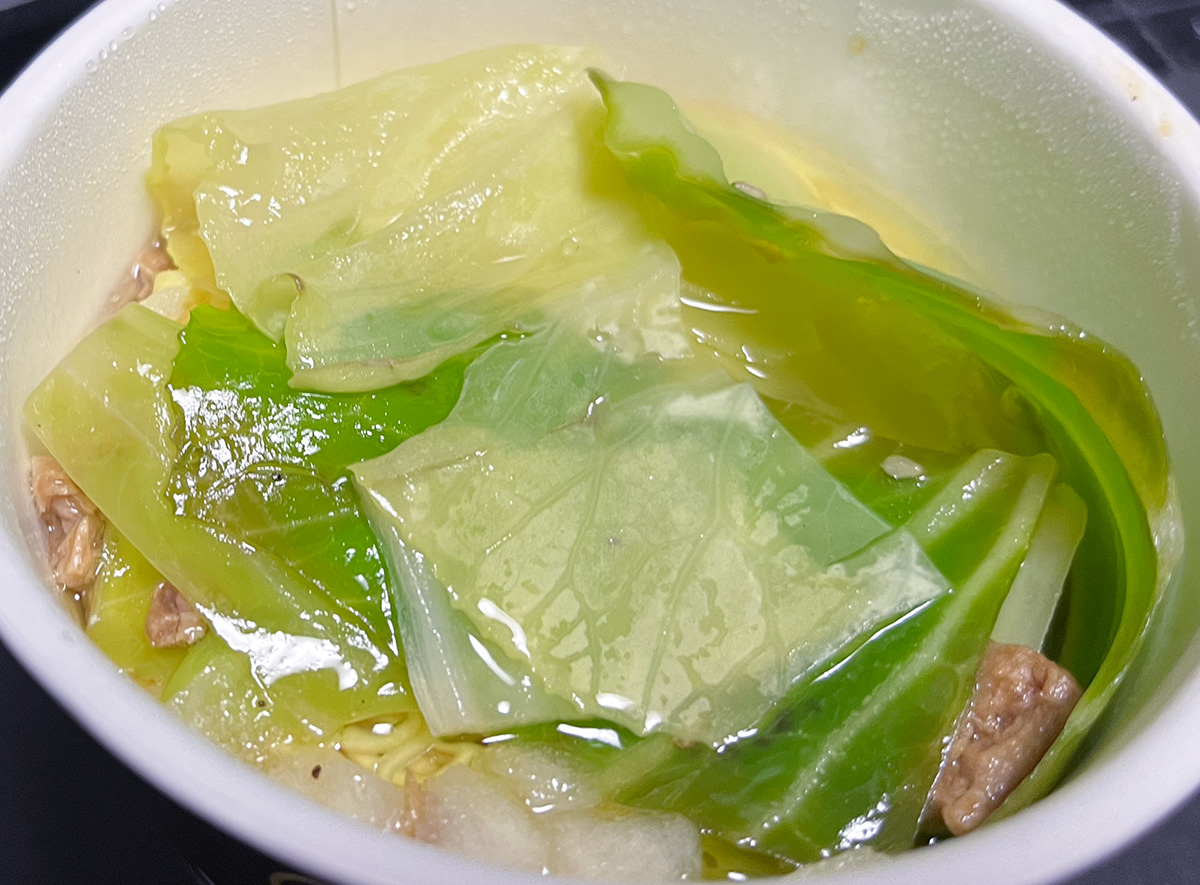 加えたキャベツだけど、このスープとよくあったのかな味をアップしてくれるね。