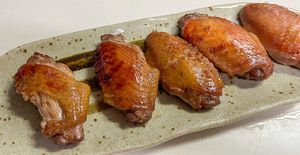 2、3日漬け込んだ手羽中を焼いてみた。手羽元や手羽先はよく売ってるんだけど。