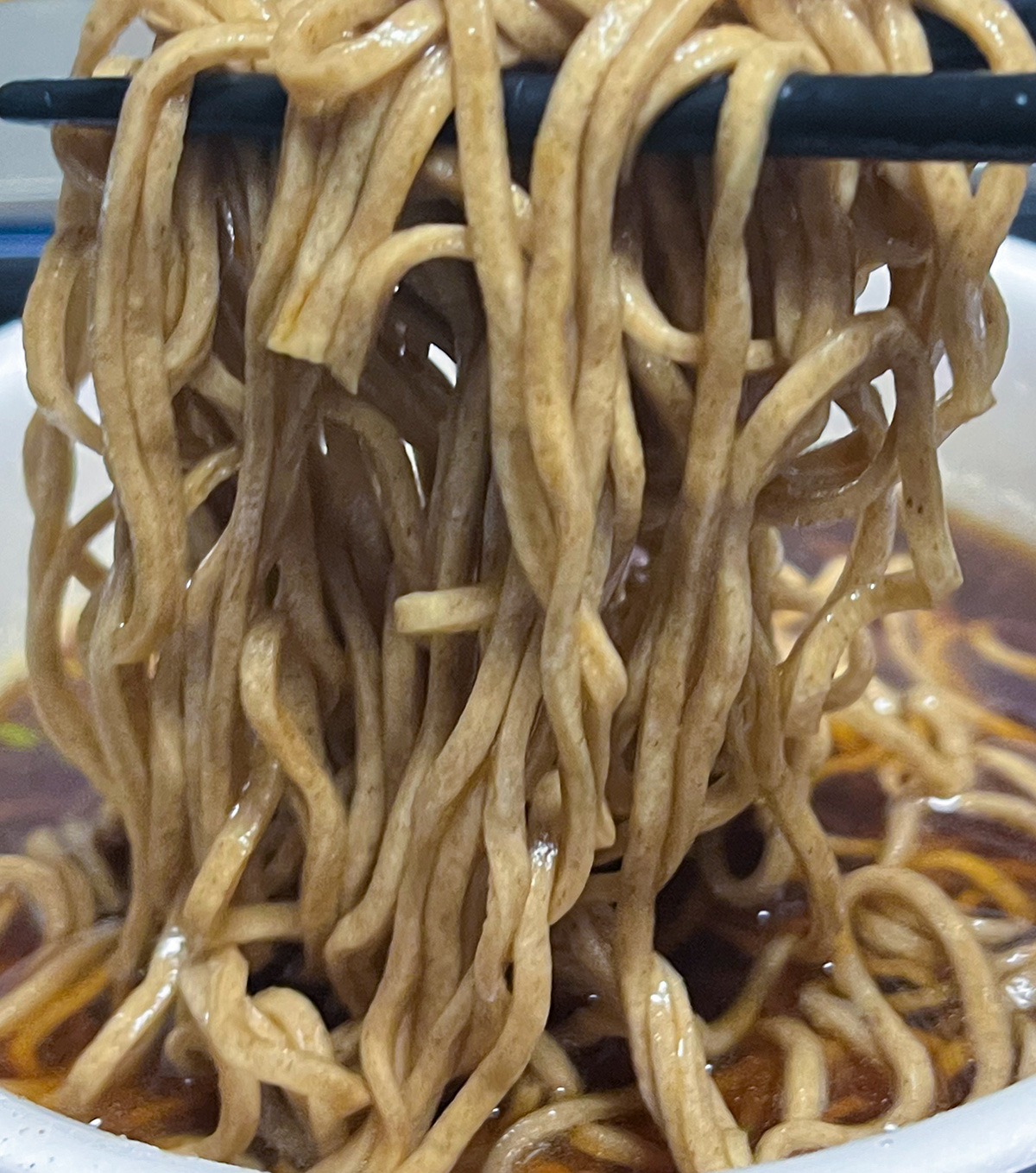 日清によると、信州のこだわり噛みごたえの太切り麺。
