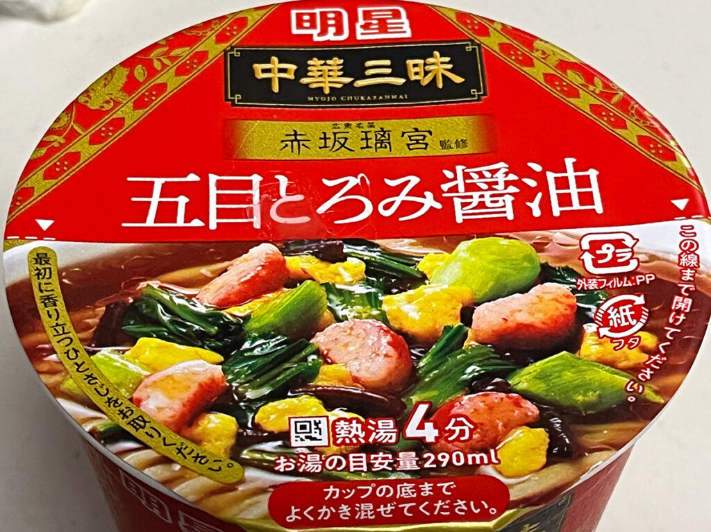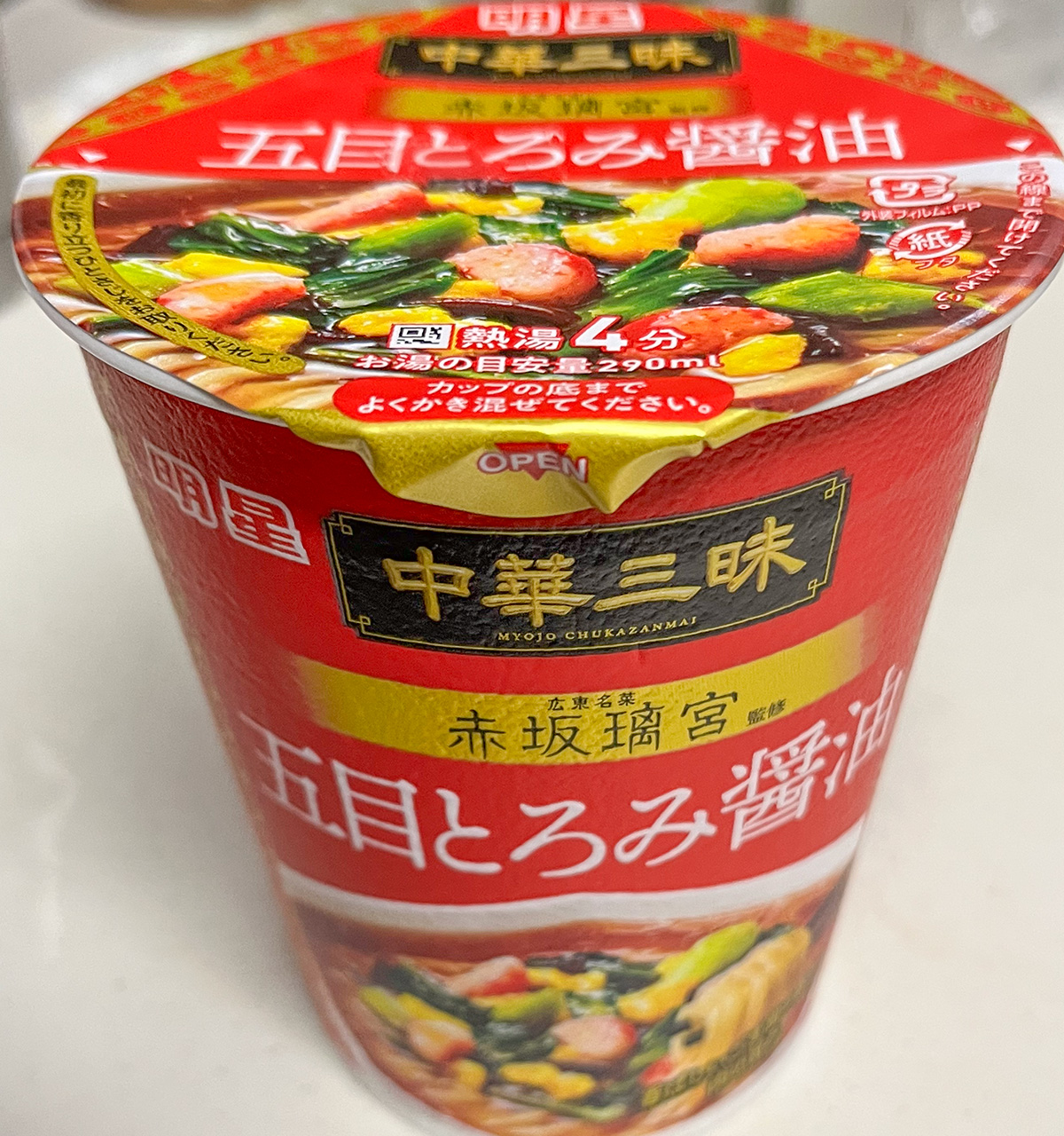 カップの中華三昧赤坂璃宮五目とろみ醤油。