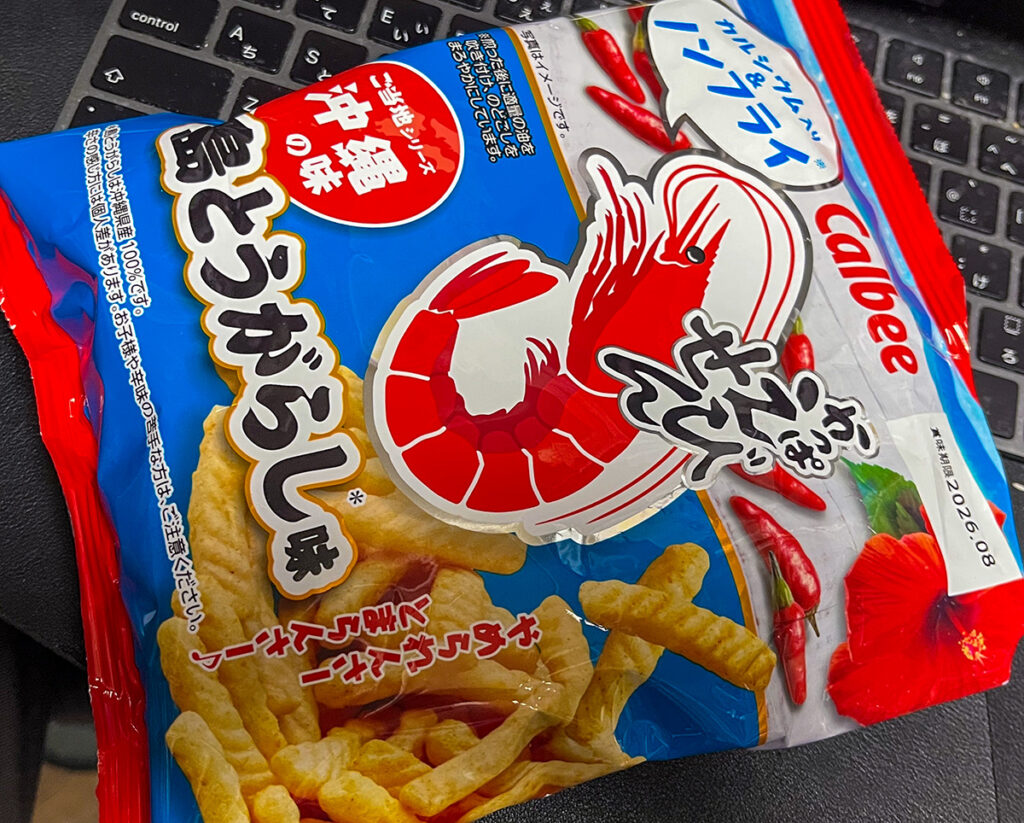 かっぱえびせん島とうがらし味。ご当地シリーズ沖縄の味。
