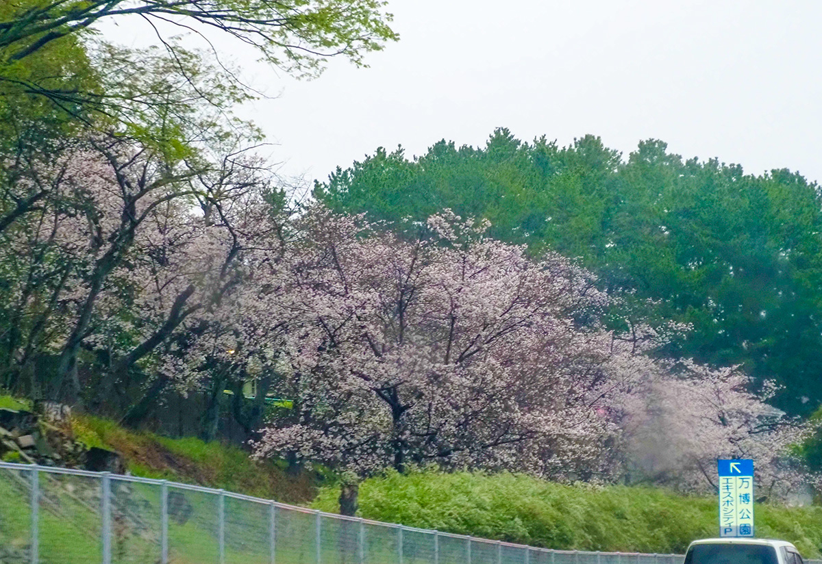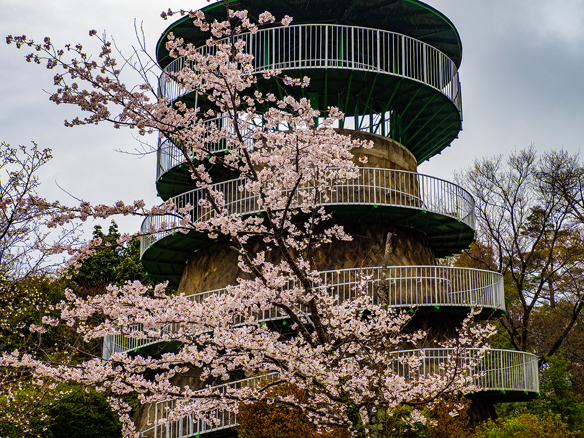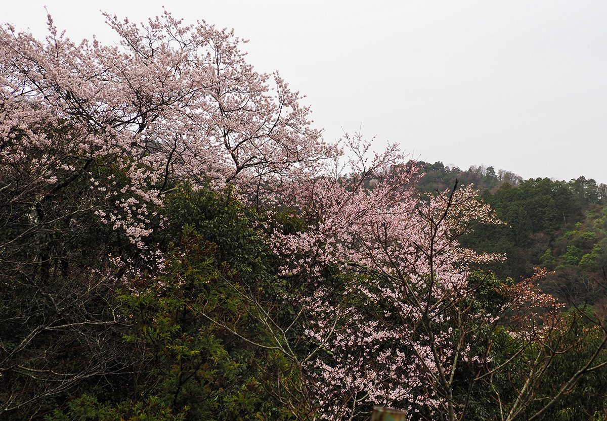 あいにくの天気だけど、去年の秋に紅葉を見た池田市の五月山に桜を見にやってきた。
